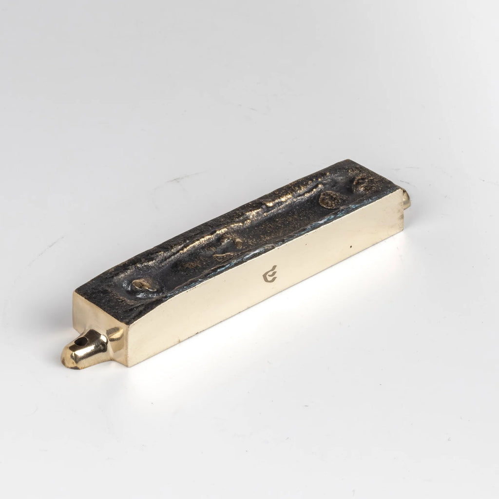 Cast from an impression of pre-WWII  remnants of  a Mezuzah found in Bialystok at Ciepla 8, which was part of the Ghetto . From a Judiaca project in Poland called "Mezuzah From This Home".  Impressions are made of  remnants of Mezuzot found throughout Poland and from these are cast a new Mezuzah in bronze.  Each one recalls the memory of some of the 3.5 million Jews that lived in Poland before WWII, and carries these memories by making these Mezuzahs live again in their original use.  Each is engraved with the address where the casting was taken.