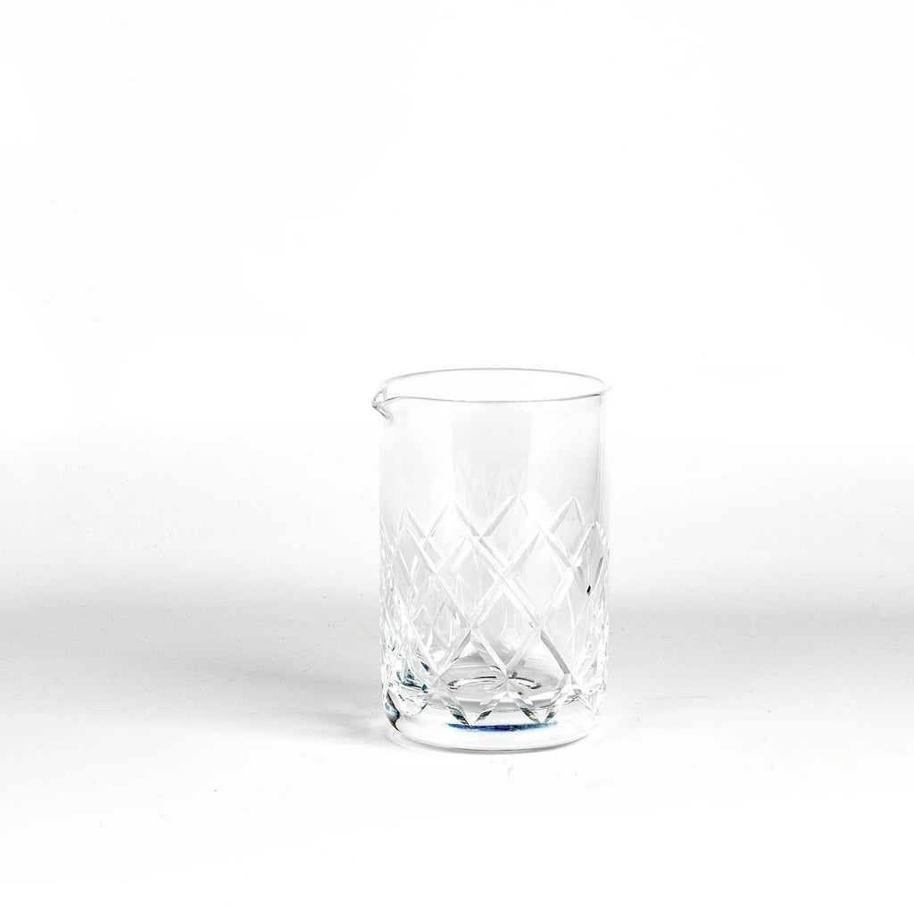 Seamless diamond cut mixing glass with a beaker like spout. Handblown in Japan.◦ 5.5" x 3"∅◦ 18 oz.