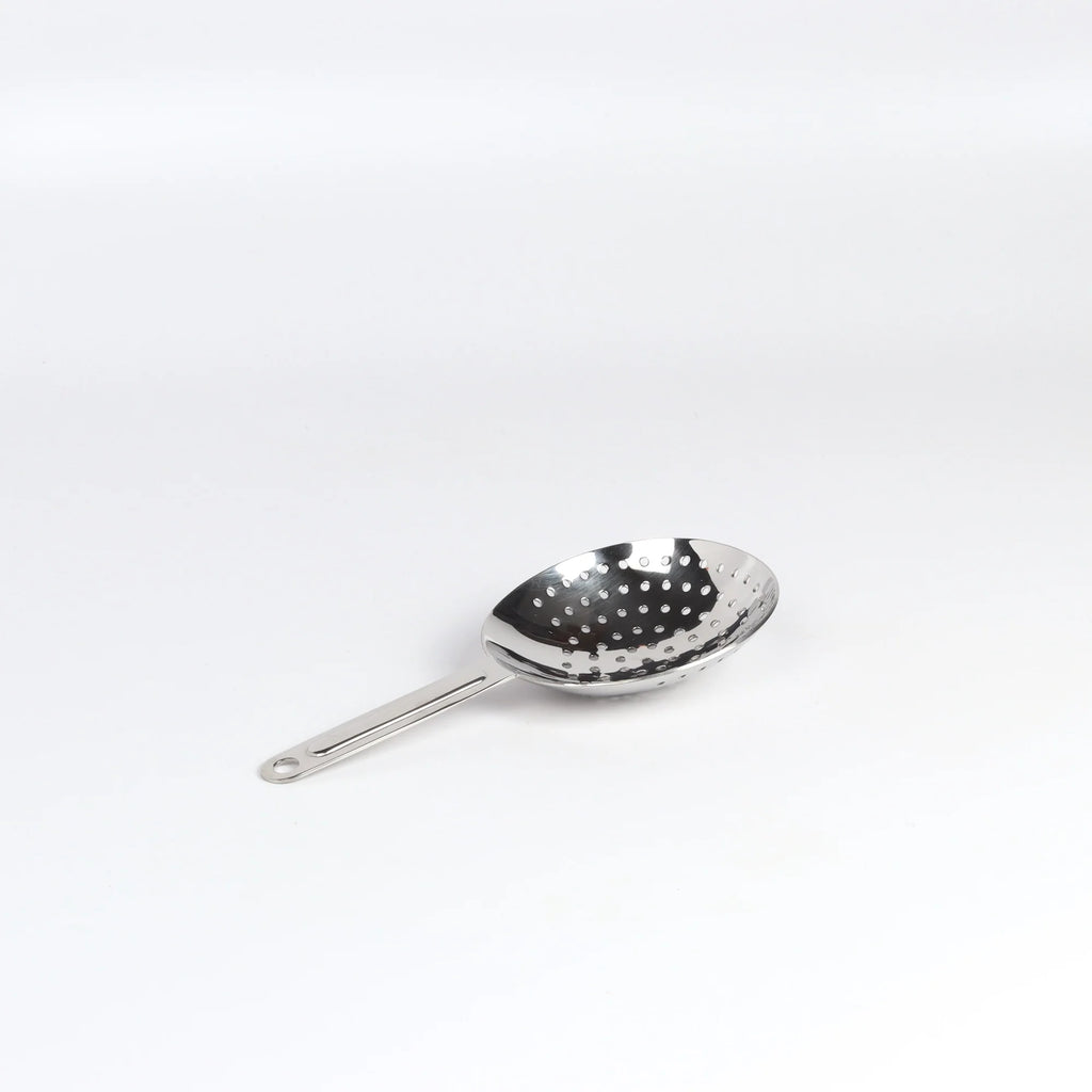 A strainer is an essential for making cocktails at home. This perforated spoon-like cup with handle in high quality polished stainless steel was designed to fit a mixing glass. Made in Japan.