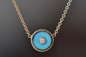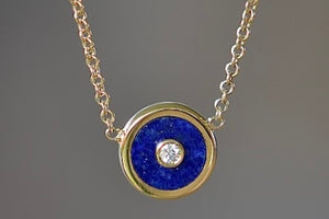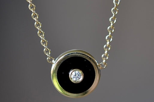 The mini compass necklace is modernity and simplicity at its best. Stone inlay is accented with a centrally placed white diamond. Handcrafted in Los Angeles.