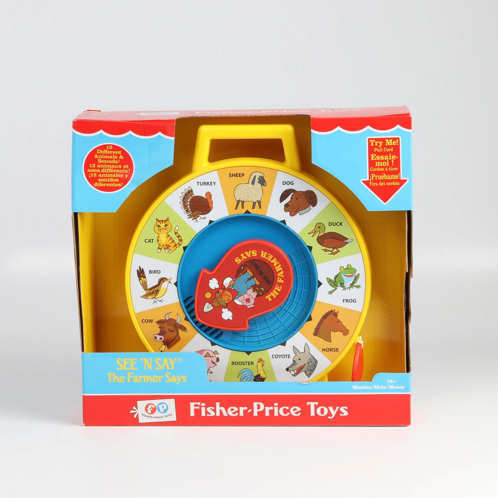 Originally introduced in 1965, we all remember this classic toy. This is a reproduction of the original from Fisher Price Toys. Nostalgic for you, fun and educational for the child. The first talking toy that allowed the child to pick the sound they want to hear.